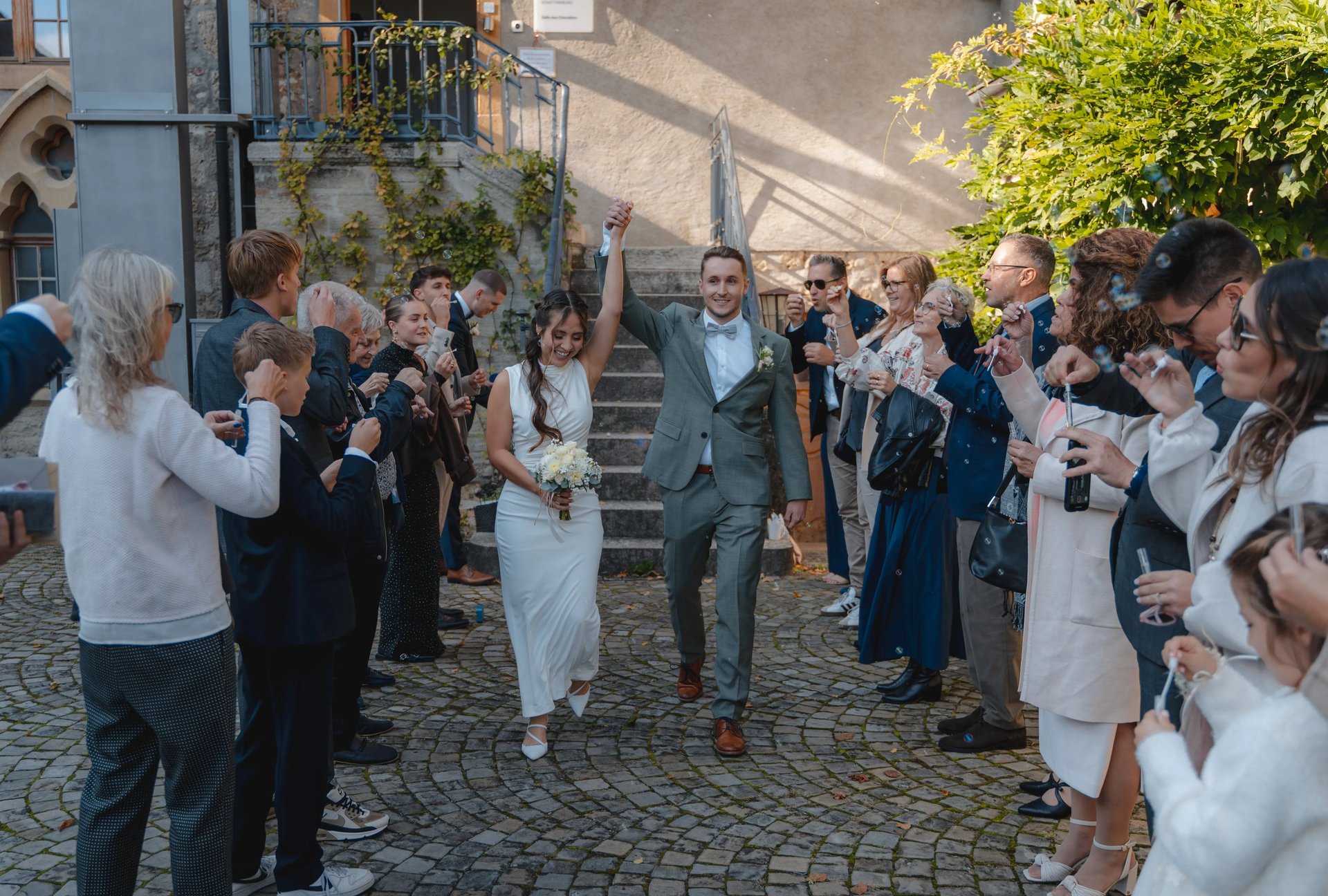 Au cœur d'un shooting de mariage, l'amour et la joie rayonnent. Entre rires et larmes de bonheur, le photographe saisit des instants précieux : un regard tendre, un sourire partagé avec la famille et les amis. Les détails sont mis en lumière pour composer un souvenir visuel inoubliable, témoignage éternel de votre engagement.